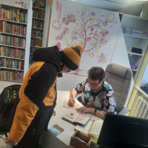 Первый читатель среди школьников – Завгородний Илья ученик 4А класса СОШ №1, первый взрослый читатель – воспитатель детского сада «Солнышко» Стадничук Людмила Васильевна. Двенадцатыми, в честь дня первого посещения Детской библиотеки в 2026 году, стали ученицы 3А класса СОШ №1 Терещенко Кира и Марандич Таня.