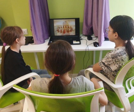 Мультсалон «Мы живём в России: Гора самоцветов». Уютно устроившись на диване, ребята смотрели яркие и поучительные мультфильмы из серии «Гора самоцветов». Эти истории, основанные на народных сказках, не только развлекали, но и учили доброте, дружбе и уважению к культурному наследию.