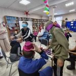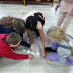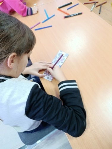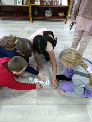 Чтобы отогреть книги, ребята отгадывали загадки о зимних сказках и их героях. Складывали ключевые слова из снежинок.