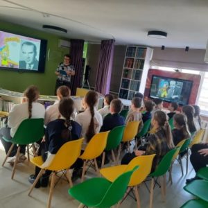 Ученики 4 «Б» класса СОШ (классный руководитель Курбатова О. Г.) узнали, для кого автор написал свой первый рассказ, отвечали на вопросы викторины по произведениям автора, поучаствовали в конкурсе актеров, спели хором песню про кузнечика. Закончилось мероприятие просмотром мультфильма по произведению Николая Носова.