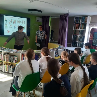 Ученики 4 «Б» класса СОШ (классный руководитель Курбатова О. Г.) узнали, для кого автор написал свой первый рассказ, отвечали на вопросы викторины по произведениям автора, поучаствовали в конкурсе актеров, спели хором песню про кузнечика. Закончилось мероприятие просмотром мультфильма по произведению Николая Носова.