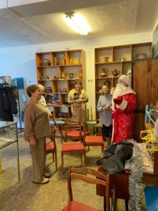 За душистым самоваром, в теплой компании участники делились историями, смеялись и, конечно, пили ароматный чай. Но самым неожиданным и радостным моментом стал визит долгожданного гостя — самого Деда Мороза! Он пришел не с пустыми руками, а с добрыми словами, поздравлениями и пожеланиями счастья в наступающем году.