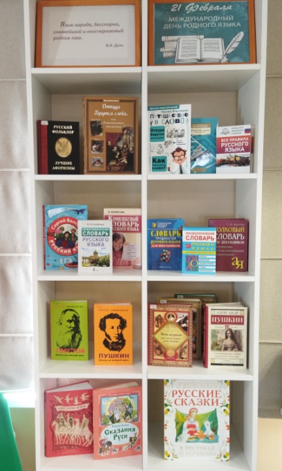 К мероприятию была оформлена выставка «Я люблю свой язык родной», на которой представлены книги, словари и справочники для изучения родного, русского языка.