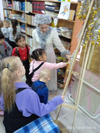 На интерактивном квесте «Пропавшие страницы Нового Года» ребята превратились в команду бесстрашных «Хранителей времени». Они расшифровывали послания и собирали ледяные пазлы в «Отделе снежных превращений». Отвечали на каверзные загадки от обитателей «Сказочного леса». Наводили порядок в перепутанных историях и проявляли недюжинную внимательность.
