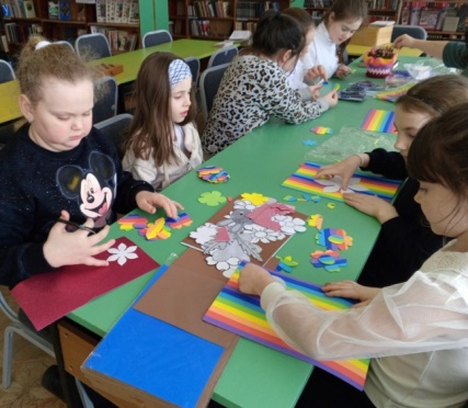 Ребята не только вырезали, клеили, но и рассказывали о дорогих, родных, любимых мамах и бабушках. Ребята трепетно подошли к творческому процессу и вложили в свои поделки частички тепла и любви, и сделали яркие весенние цветы и игрушки. Получилось очень красиво и трогательно! Все участники мастер-класса получили массу положительных эмоций и хорошее настроение. В ходе мастер-класса библиотекарь познакомила детей с книжной выставкой «Женская судьба за книжным переплетом».