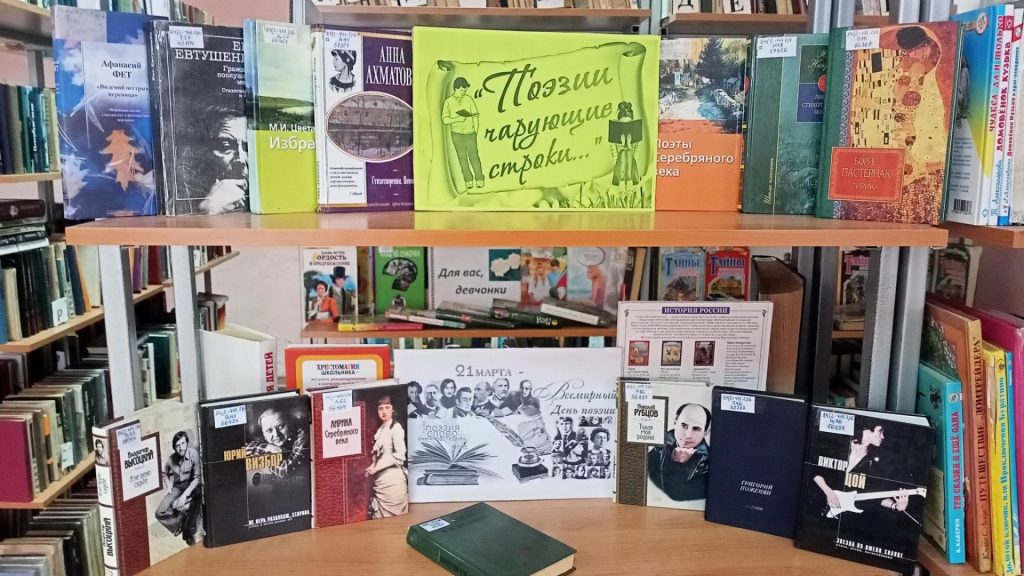 Она может быть грустной и радостной, лиричной и драматичной, но всегда она трогает за живое. Присутствующие отправятся в увлекательное путешествие по страницам русской поэзии от Серебряного века, через военные годы к поэтам-шестидесятникам. Ребята познакомятся с творчеством таких поэтов, как С. Есенин, А. Ахматова, М. Цветаева, Ю. Друнина, Б. Окуджава, Е. Евтушенко, Р. Рождественский и другими. Участники будут не только слушателями, но и сами смогут прочитать любимые строки известных поэтов. Для закрепления материала учащиеся ответят на вопросы викторины. К мероприятию оформлена тематическая выставка из фонда библиотеки.