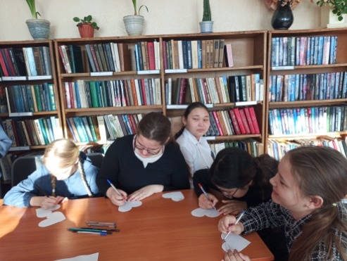 К мероприятию была подготовлена выставка «Наши любимые книжки». Библиотекарь познакомила ребят с новыми произведениями и рассказывала о представленных книгах на выставке. Затем ребятам раздали сердечки, на которых они записывали пожелания и поздравления для своих любимых книг.