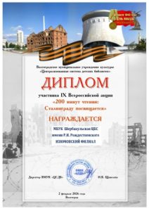 2 февраля 2026 года исполнилось 83 года со дня разгрома советскими войсками немецко-фашистских войск в Сталинградской битве. В рамках IХ акции «200 минут чтения: Сталинграду посвящается» юные читатели Изюмовского филиала смогли прикоснуться к героическим страницам истории этого дня.