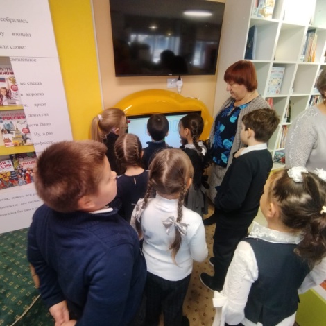 Первоклассники Шербакульского лицея (учитель: Ситникова Н. В.) пришли на экскурсию в Центральную детскую библиотеку. Маленьких