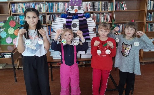 Юные читатели Новоскатовской сельской библиотеки праздновали день рождение Снеговика. Они слушали добрые сказки про снеговика,